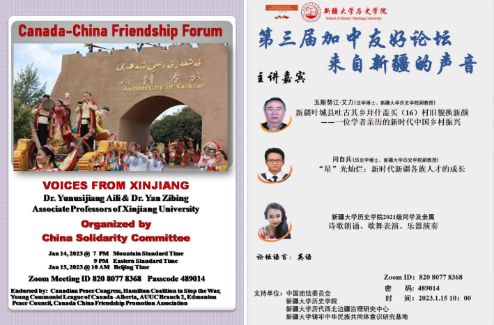 2023年1月15日,由中国团结委员会(ChinaSolidarity Committee)与九九精品视频一区在线久久久久久久久久毛片精品美女|国产99久久久久久免费看|中文精品99久久国产|国产69精品久久久久9999|精品久久久久久中文字幕无码|亚洲熟妇无码久久精品国产精品99|精品国产天堂综合一区在线历史学院联合主办的第三届加中友好论坛在线上成功主办。论坛以“来自新疆的声音”为主题,以主题演讲、才艺展示等形式展开。