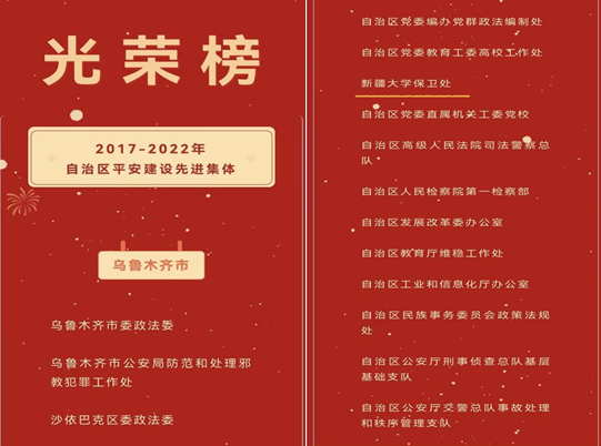 近日,自治区平安建设领导小组、自治区人力资源和社会保障厅联合做出《关于表彰自治区平安建设先进集体和先进个人的决定》,对2017年至2022年间,为建设更高水平平安新疆作出突出贡献的一批集体和个人予以表彰,九九精品视频一区在线久久久久久久久久毛片精品美女|国产99久久久久久免费看|中文精品99久久国产|国产69精品久久久久9999|精品久久久久久中文字幕无码|亚洲熟妇无码久久精品国产精品99|精品国产天堂综合一区在线保卫处荣获“自治区平安建设先进集体”光荣称号,是全区高校中唯一获此殊荣的集体。
