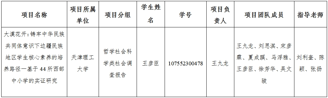 根据《关于举办第十九届“挑战杯”全国大学生课外学术科技作品竞赛的通知》要求,现对我校学生跨校参加第十九届“挑战杯”全国大学生课外学术科技作品竞赛项目情况进行公示。我校历史学院学生王彦臣作为项目成员跨校参加第十九届“挑战杯”全国大学生课外学术科技作品竞赛,具体信息见下表: